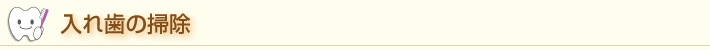 必ずお口から取り外して隅々まで掃除します。入れ歯はプラスチックでできてるものが多いため、研磨剤入りの歯みがき粉を使わず、あまり強く磨き過ぎないことが大切です。専用の入れ歯用ブラシを使用し、やさしく磨きましょう。クラスプ(バネ)の部分は特に念入りに。